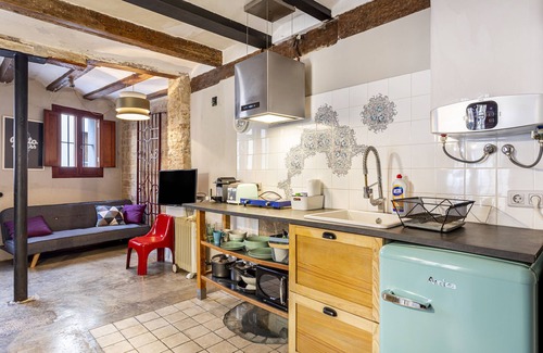 The studio apartment Bajo en el centro is located in València and is the ideal accommodation for a relaxing getaway. The 4-storey property consists of a living/sleeping area, a well-equipped kitchen and 1 bathroom and can therefore accommodate 2 people. Additional amenities include high-speed Wi-Fi (suitable for video calls), a TV, a washing machine as well as a dryer. A baby cot and a high chair are also available. This accommodation does not offer: air conditioning.