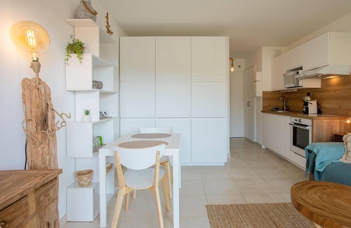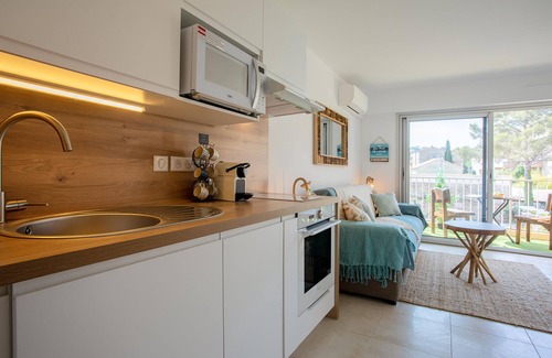 Situated in Cavalaire-sur-Mer, the studio apartment "Golfe de Saint Tropez" creates an enjoyable setting for your stay. The 22 m² property consists of a living/sleeping area, a well-equipped kitchen and 1 bathroom and can accommodate 2 people. On-site amenities include Wi-Fi, a TV, air conditioning, a washing machine, a dishwasher and a capsule coffee machine.