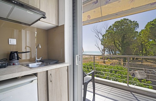 The studio apartment Iguana 7 is located in Preveza and is an ideal choice for a relaxing getaway. The property, with an area of 12 m², features a living/sleeping area, kitchen, and 1 bathroom, accommodating up to 2 people. Additional amenities include high-speed Wi-Fi (suitable for video calls), television, air conditioning, and a high chair for children. You have a private outdoor area with a balcony, and guests can access shared facilities such as a fenced pool, garden, children's pool, open and covered terrace. The property is located right on the beach, and public transport is within walking distance. There are two parking spaces available on the property. One pet is allowed. Events are not permitted. Security cameras and/or audio recording devices are present on the premises. The accommodation features energy-saving lighting.