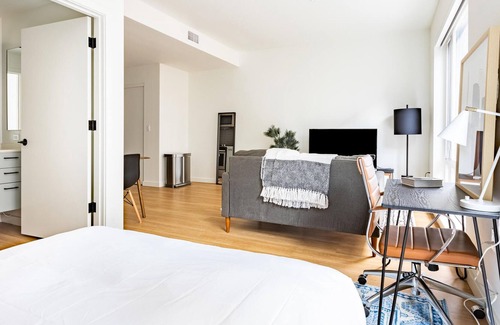 This stunning apartment is centrally-located in the Northwest District of Portland, making it a convenient space to live, work, and play. This walkable neighborhood features dining spots likeQueue Coffee,Please Louise, Breakside Brewery, and Sunshine Noodles as well as shopping atNew Seasons Market. Just a short drive away, you can reach even more retail destinations like Trader Joe's, REI, the Pioneer Place andPortland Hop Onshopping malls. Nearby green spaces include sprawling Forest Park and Trails, Overlook Park, andWallace Park. Bustling Downtown, the Portland Art Museum, The Freakybuttrue Peculiarium and Museum,Old Town Chinatown (which features the lively Saturday Market), and the famous landmark Powell's City of Books are all just 10 minutes away! You'll love this gorgeous studio's ideal location and many amenities, including its floor-to-ceiling windows, cozy bed, updated kitchen and bathroom, and on-site laundry.