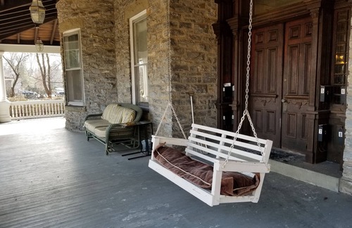 Stay like royalty at Bucks County's finest and most beautiful Queen Anne Victorian Mansion, the Lovett House. This studio apartment was once the office of Dr. Henry Lovett, a wealthy physician from Philadelphia. The house was built by his father as a wedding present. Sleeps 2 adults & 1 child comfortably with one queen size bed and one futon. A full kitchen, private entrance, private porch, beautiful architecture, and use of the grand wraparound porch make this a fantastic stay.