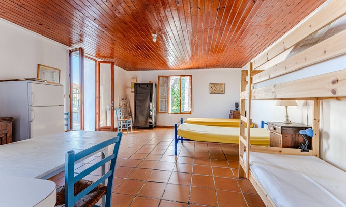 Simple gîte d'étape for one night on the side of a busy road: pilgrims on the Camino de Santiago de Compostela/family. No sheets or towels, but pillows and blankets. One 35 m² ground-floor room: kitchenette with dining table and washing machine/4 beds: 2 single beds and 2 bunk beds.Bathroom with shower, washbasin and WC. No TV, but wifi. 40 m² private courtyard. Possibility of accommodating a donkey in a nearby garden. Dogs welcome.