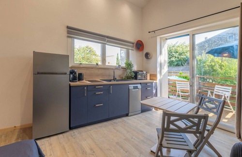 The space is fully equipped for your autonomy: kitchenette with dishwasher, induction hob, oven, coffee maker, kettle, crockery and essential accessories, shower room with shower, washbasin, WC, washing machine, living room with 160 cm bed (new bedding), wardrobe, table, chairs....