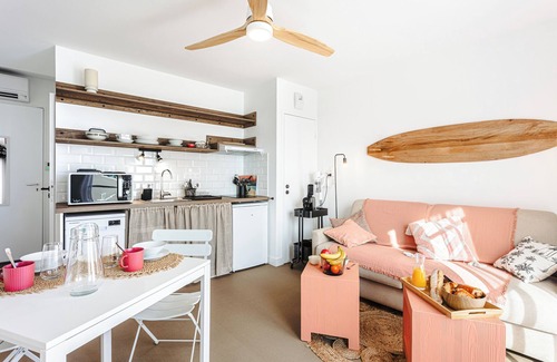 In addition, this flat has a terrace facing the sea, offering a beautiful view of the ocean, as well as the kitesurfing, windsurfing and wingfoil spots.