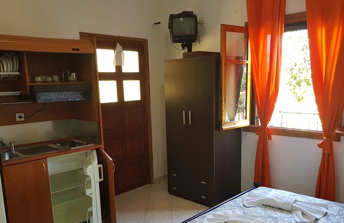 Just 4 km from the property you will find the water park Aqualand. The beaches Glifada, Kontogialos, Ermones and Myrtiotisa are all 1 - 3 km away. Furthermore, at Ermones it is possible to rent a boat and there is a golf course 500 m from the studio apartment. The area is also ideal for trekking.