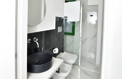 Studio apartment with sofa bed for 2 persons, marble bathroom with walk-in shower, bidet, hairdryer.