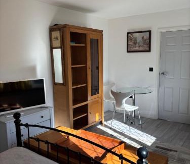 Studio apt with private parking offers accommodations in Teddington, 2.3 miles from Twickenham Stadium and 3.1 miles from Hampton Court Palace. This property offers access to a terrace and free private parking. Hounslow West Tube Station is 3.1 miles from the apartment and Osterley Park is 4.7 miles away. With free Wifi, this 1-bedroom apartment offers a flat-screen TV and a kitchenette with a microwave and toaster. Towels and bed linen are featured in the apartment. For added privacy, the accommodation features a private entrance. Guests can also relax in the garden. Kew Gardens Tube Station is 5 miles from the apartment, while Boston Manor Tube Station is 5.3 miles away. London Heathrow Airport is 4.3 miles from the property.