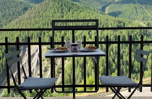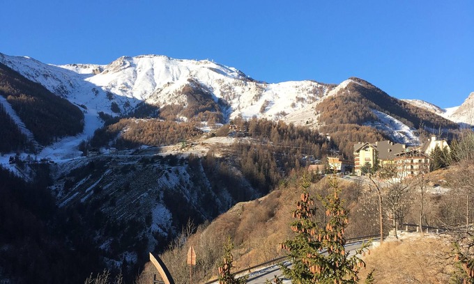Just renovated (In November 2017), this very nice F1, 4 beds with its fireplace will welcome you all winter in its new warm decor. (sofa bed bz 140x190 in the main room and bunk beds 90x190 in the hallway leading to the bathroom), living room with balcony and panoramic views of the mountains, facing south, kitchen, bathroom, wc. A few minutes (7 min) walk from the station and gondola that will take you to the slopes.