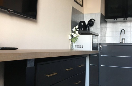 The kitchen is equipped with a stovetop and a refrigerator, as well as a coffee maker, an electric kettle, and a microwave. Enjoy the free WiFi and TV. Bathroom amenities include a hair dryer, towels, and toilet paper. And you can even travel light because you'll have access to laundry facilities. Other amenities at this 1-bedroom, 1-bathroom rental include bed sheets, heating, and a dining table.