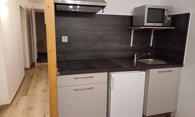 Rent studio-cabin for 3 pers. 25 m², on the 1st floor with elevator. At the entrance, a sleeping area with 1 bed of 90 not overlooked with the bed of 140 in the living room. Bathroom separated from the toilet in the hallway. Kitchenette (mini oven, microwave, fridge, hotplates, coffee maker, toaster, kettle, raclette, fondue, crockery needed). Flat screen HD TV and free WIFI.