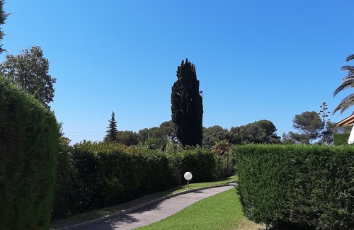 Cozy, comfortable studio-cabin with terrace and garden (lawn), enjoying direct access to the sea (secure gate) overlooking the Corniche d'Or (or Estérel). A studio in a luxury residence with 5 small 2-storey, building in a beautiful park of 2 hectares at the foot of the Esterel Mountains. Studio exposed seaside SE benefiting from wooden shutters and a green screen.
