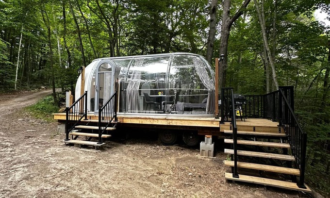 Escape to the unique Studio Capsule House, a charming dome house nestled in Parry Sound, Ontario. Enjoy a tranquil getaway with lake access and beach access, perfect for a relaxing vacation. This cozy holiday home offers comfortable amenities including air conditioning, a BBQ grill, and free parking. Explore the beauty of the Canadian landscape and create lasting memories in this idyllic setting. Ideal for couples and small families, this property provides a perfect blend of comfort and adventure.