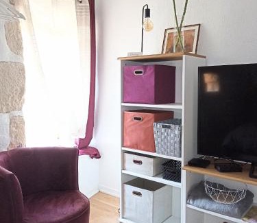 A recently renovated vacation home, Studio cosy en pleine nature dans maison en pierre avec piscine et wifi offers accommodations in Saint-Romain-et-Saint-Clément. This property offers a private pool, free Wifi, and free private parking. Outdoor seating is also available at the vacation home. Offering garden views, this vacation home also has a flat-screen TV, a well-equipped kitchenette with an oven, a microwave, and a toaster, as well as 1 bathroom with a shower and a hair dryer. For added privacy, the accommodation has a private entrance and soundproofing. Guests can also relax in the garden. Jumilhac Castle is 16 miles from Studio cosy en pleine nature dans maison en pierre avec piscine et wifi, while Périgueux Golf Course is 23 miles away. Limoges – Bellegarde Airport is 40 miles from the property.