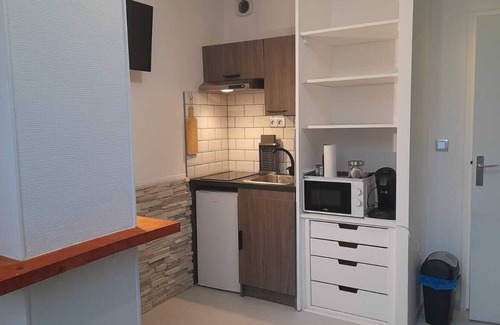 Studio tout confort dans une résidence à quelques pas des commerces et d'un supermarché, proche cure ou pour hôte de passage.