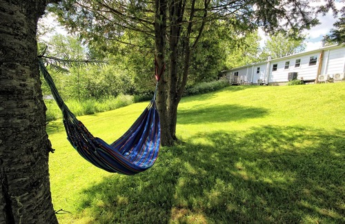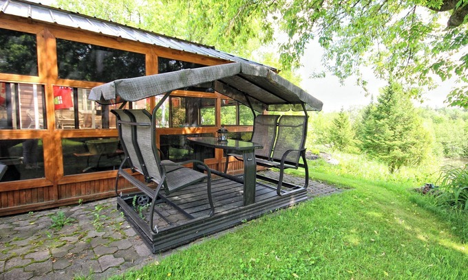 Vous y trouverez 1 lit queen, 1 lit double, 1 sofa-lit, coin repas, cuisinette et salle de bain avec baignoir.