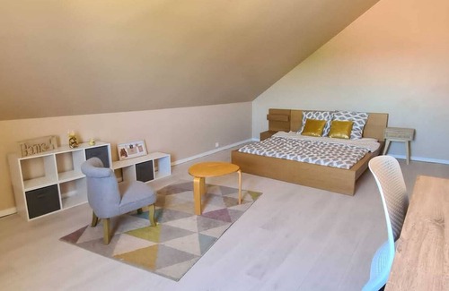 - Exclusive studio with an office, balcony, Wi-Fi & free parking spot