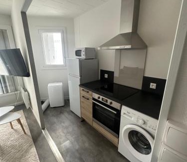 Studio du Château is located in Jonzac, just 29 miles from Saintes Train Station and 28 miles from Saint Pierre Cathedral. With city views, this accommodation offers a balcony. Abbaye aux Dames is 29 miles from the apartment and Cognac Golf Course is 24 miles away. With free Wifi, this apartment provides a satellite flat-screen TV, a washing machine, and a fully equipped kitchen with an oven and microwave. Towels and bed linen are provided in the apartment. The accommodation is non-smoking. Île de Patiras is 27 miles from the apartment, while Saintes Golf is 30 miles away. Bordeaux–Mérignac Airport is 59 miles from the property.