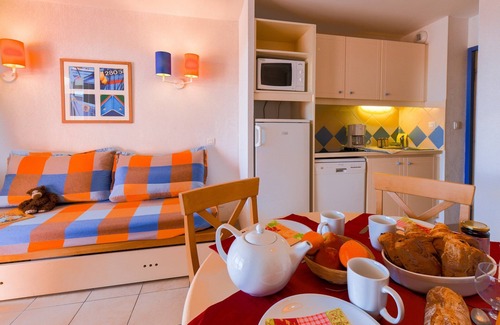 Escape to our charming studio, ideally located 300m from the tranquil Beach of the Salses Marine Lake and 1.5km from the lively main beach. Dive into the outdoor pool, relax on your private terrace, and delight in seasonal shops and entertainment just 50m away. Experience ultimate comfort with bed linens and towels provided!