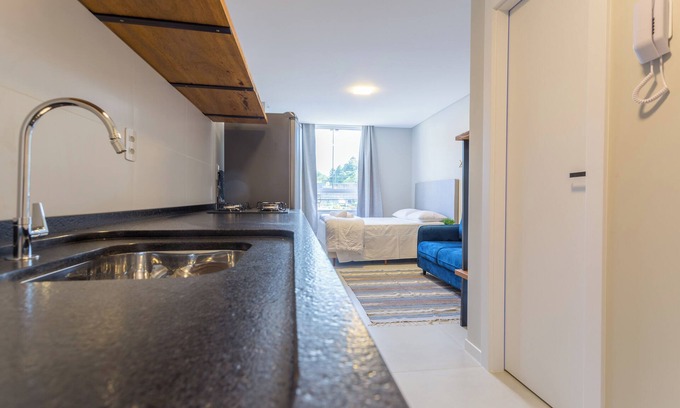 Um espaço especial pensado pela design de interiores Kathelen Pereira para férias ou trabalho em edifício novo, pensado e projetado com carinho para melhor atender nossos hóspedes. Localização privilegiada no Centro histórico da Barra, próximo a Igreja de Nossa Senhora do Bom Sucesso e de ótimos restaurantes, mercados, bares, para curtir uma saída sem precisar pegar o carro.