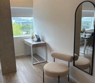 Studio Flat Above MK Station offers accommodations in Milton Keynes, 3.7 miles from Bletchley Park and 10 miles from Woburn Abbey. The air-conditioned accommodation is 2.1 miles from Milton Keynes Bowl. With free Wifi, this 1-bedroom apartment features a flat-screen TV, a washing machine, and a fully equipped kitchen with an oven and microwave. Towels and bed linen are available in the apartment. This apartment is allergy-free and non-smoking. Silverstone is 16 miles from the apartment, while Notley Abbey is 29 miles from the property. London Luton Airport is 27 miles away.