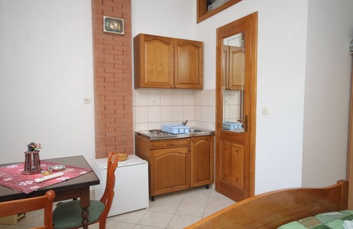 Studio flat can accommodate 2 guests. Beds are situated in 1 sleeping rooms, within 17m2. Guests can use a private terrace to enjoy the warm summer evenings. The studio offers the sea view. Food can be prepared using barbecue which is shared with other guests too. This accommodation unit welcomes pets at an additional charge.