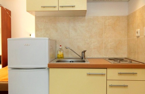 Studio flat can accommodate 2 guests. Beds are situated in 1 sleeping rooms, within 13m2. Food can be prepared using barbecue which is shared with other guests too. There is no balcony or terrace in the reserved accommodation unit.