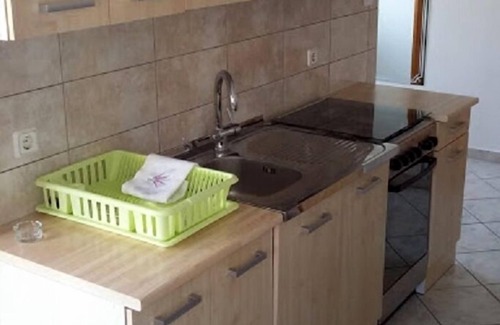 Studio flat can accommodate 4 guests. Beds are situated in 1 sleeping rooms, but also in the living room, within 34m2. Guests can use a private balcony to enjoy the warm summer evenings. The studio offers the sea view. Food can be prepared using barbecue which is shared with other guests too. This accommodation unit welcomes pets at an additional charge.