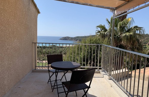 A stay has a bed in 140, sea view. Equipped kitchen area with dishwasher, Fridge, plates of baking, microwaves, coffee machine, toaster, kettle, Television (chains of TNT), Air conditioning etc.