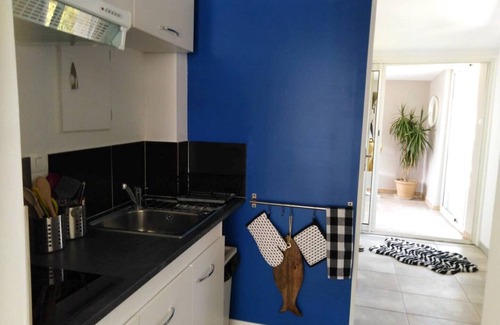 Studio of 38 m2 consisting of a bathroom, a kitchenette, a dining / living room area and a bedroom. This completely renovated apartment is located in the annex of my house. Warm and bright space where life is good.