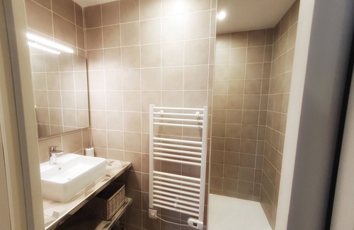 The HÊTRE studio is an example of cocooning and tranquillity. It may give you the desire to discover our beautiful hiking trails... Quiet and bright, with a surface area of 29m2 located on the 1st floor, it has a queen size bed with mattress topper for added comfort, a cosy lounge area, a well-equipped kitchen area, a bathroom/wc with Italian shower, rain head and electric towel warmer. Wifi wired for better connection. Individual heating and air conditioning by heat pump. High performance insulation. Sheets, towels, dishcloths, household products, provided. Laundry room with washing machine and ironing equipment available on the ground floor. The building does not have a lift. Shops, services, parking nearby. Cyclists welcome. A few steps from the historic district and the Loire.