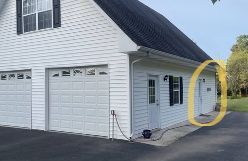Enjoy your time off at this peaceful location located on the outskirts of Clinton. This studio housing has a full kitchen, washer and dryer, and a private deck where you can hear birds chirping and see the creek down below. It is a quick 5 minute drive to Walmart and Interstate 75. In 15 minutes you can experience Norris Lake where boating and fishing can be enjoyed. A short 30 minute drive will get you to Windrock for all your off roading adventures. And if city life is more of your speed, we are a quick 25 minute drive to down town Knoxville where live entertainment, shops, and culture can be found. It is a great location for whatever your plans! This is a non smoking, no pets, new build that people with allergies and asthma will appreciate. This Studio housing can accommodate up to 4 people, with a queen size bed, and a couch with two recliners. This place is located on the owner's property above the detached garage. The detached garage is separate from their house giving you plenty of space and privacy. It has a Smart TV and a gorgeous view depending on your preference. Come experience it for yourself, you won't regret it!