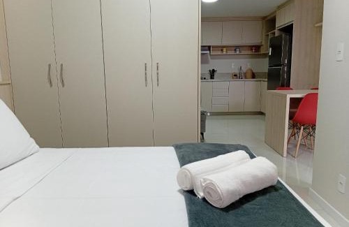 Estúdio em Cond. C/ Pisc. A 550m Praia TOR0407 offers accommodations in Imbituba, a 6-minute walk from Vila Beach and 19 miles from Garopaba Bus Station. This property offers access to a terrace, free private parking, and free Wifi. The apartment features an outdoor swimming pool and an elevator. The air-conditioned apartment consists of 1 separate bedroom, 1 bathroom with a hair dryer and free toiletries, and a seating area. Towels and bed linen are available in the apartment. The accommodation is non-smoking. If you'd prefer to not eat out, you can make use of the kitchen facilities, which include a microwave, coffee machine, and a fridge. Siriu Dunes is 21 miles from the apartment, while Middle Lake is 13 miles from the property. Humberto Ghizzo Bortoluzzi Airport is 48 miles away.