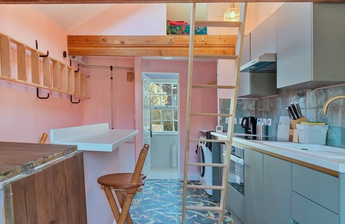 Discover an enchanting urban oasis in the vibrant heart of Greenwich, South East London, where chic style meets thoughtful design in a charming studio apartment. This cleverly curated retreat is the ideal getaway for couples or small families seeking comfort and practicality without sacrificing character. As you step inside, you'll find a cozy lounge that beckons with a snug double sofa bed, perfect for unwinding after a day of exploring. Settle in for a movie night with SKY TV, or relish the unique charm of the space, enhanced by its clever layout. Elevated above the living area, two delightful loft beds offer a whimsical nook for older kids and teens, inviting them to climb the ladder and claim their own cozy hideaway. While this charming nook may not be suitable for little ones or those with mobility challenges, it adds a fun element to your stay. Beyond the living space, you’ll discover a surprisingly well-equipped kitchen, complete with everything necessary for self-catering, from a washing machine to a cafetière for your morning coffee fix. The modern bathroom features a refreshing shower, and a small storage area on the ground floor ensures your belongings stay organized during your visit. A short eight-minute walk brings you to Greenwich Tube station, opening up effortless transport links to central London and beyond. Surrounded by iconic attractions like the Royal Observatory and the National Maritime Museum, this stylish studio provides the perfect backdrop for both business trips and leisurely escapes. Craft unforgettable memories in one of London's most picturesque neighborhoods, where comfort meets convenience for a truly memorable stay.