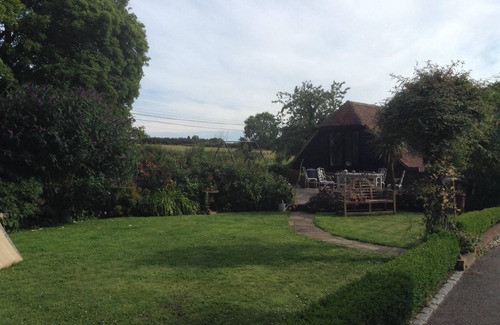 Garden studio with ensuite bathroom and small kitchenette. Patio with barbecue , outdoor sofa and chairs. The studio is situated in an area of outstanding natural beauty, ideal for walking and cycling or just chilling in the garden . Close to Canterbury, Kent Coast and Ashford Designer Outlet We are tucked under the Kent Downs and close to the famous walk The North Downs Way. There are several good country pubs within walking distance . Inside the studio there are twin beds, TV, DVD player and a double sofa bed, bespoke made bellows coffee table.