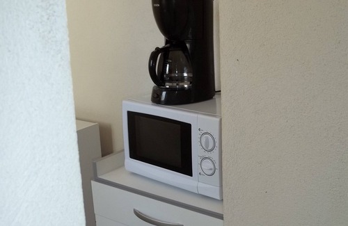 Our 27m² studio is fully equipped for a carefree holiday: electric hotplates, fridge, microwave, coffee maker, toaster, dishes and washing machine.