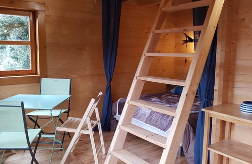 It is a small brand new wooden chalet, an independent studio, at the foot of large century old oaks in the highest village of Alta Rocca: Serra di Scopamène. The songs of the birds, the rooster, the bleat of sheep a little further: you are on the Land of Lords, in a mountain village full of life, pleasant to live, interesting to know and browse. Outdoor activities and hikes, prehistoric sites, museums, horse racing in Zonza, donkey rides, snowshoeing and cross-country skiing on the snow of the Coscione plateau ...: you have the choice to pass an active holiday!