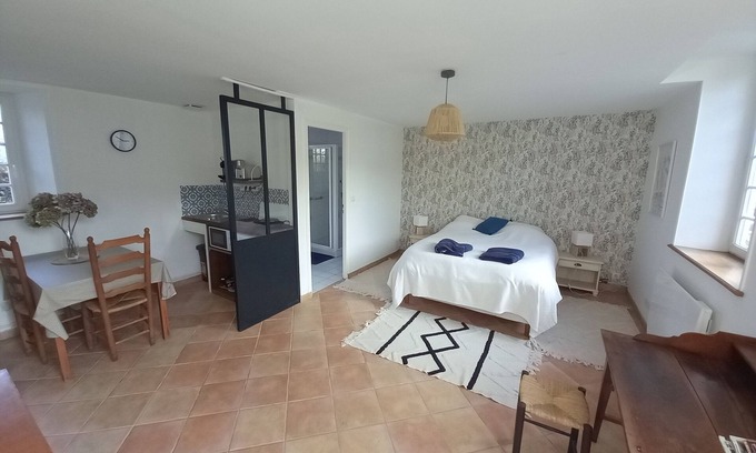 Best-rates for the Studio Indépendant La Tuilerie starts from $52 per night with includes Security/Safety, Bedding/Linens, Wellness Facilities, Fireplace/Heating, Kitchen with all other amenities. Perfect for Weddings is committed to ensuring every guest experiences a comfortable and extraordinary stay, whether planning a romantic getaway, a honeymoon, a pet-friendly stay, or celebrating with the entire wedding party.