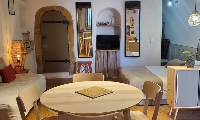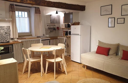 (Text automatically translated) Between Sainte Victoire and the Luberon mountains, near the city of Aix en Provence, the village of Jouques houses this charming renovated and located on the ground floor of a Provencal house with thick stone walls that keep temperatures studio constantly acting as a natural air conditioning. It is located in a street in the historic center of the village, close to shops and transport from many hiking and mountain biking.