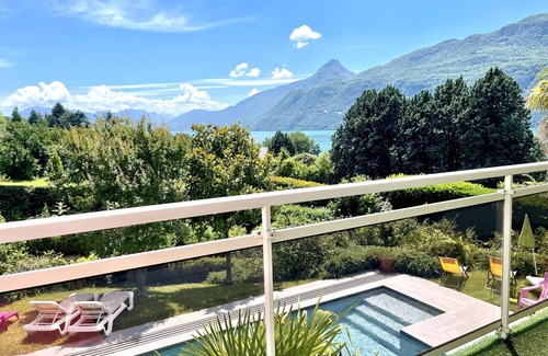 Holiday atmosphere for this pretty 25 m² studio with a superb view of the lake, the Dent du Chat and the Mont Revard mountains.