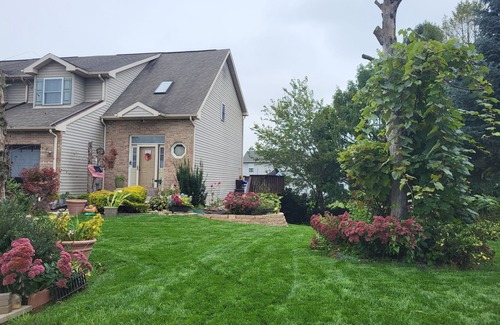 (12 steps downstairs) with personal kitchenette in dining area. with medium size refrigerator, dishes and silverware,coffee maker, all in one airfry-microwave-oven. Book now and enjoy everything this townhome has to offer.