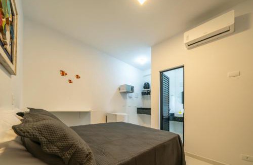 Studio Mar Bombinhas enjoys a location in Bombinhas, a 12-minute walk from Mariscal Beach and 3.3 miles from Bombinhas Panoramic View Park. This recently renovated bed and breakfast is located a 5-minute walk from Praia de Canto Grande Mar de Dentro and 600 yards from Praia de Morrinhos. The bed and breakfast offers rooms with air conditioning, free private parking, and free Wifi. Each unit has a balcony, a fully equipped kitchenette with a microwave, a dining area, and a flat-screen TV, while the private bathroom includes a shower. A stovetop, a minibar, and kitchenware are also featured, as well as a kettle. At the bed and breakfast, the units are equipped with bed linen and towels. Breakfast can be enjoyed on-site, which includes fruit and juice. Itapema Bus Station is 13 miles from the bed and breakfast, while Municipal Streets is 23 miles away. Ministro Victor Konder International Airport is 35 miles from the property.