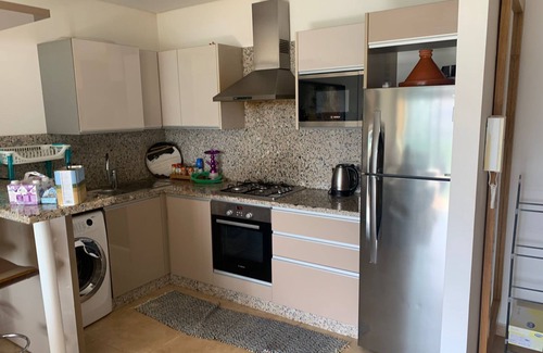 Nestled in El Mansouria, this 1-bedroom, 1-bathroom apartment brings it all within your reach. Fans of nature and the outdoors will love being 35 minutes by car from Ain Diab Beach and 32 minutes from La Corniche Beach. You'll easily make the 12-minute drive to Mohammedia Royal Golf Club or the 31-minute drive to Dahomey Beach.