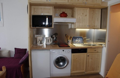 on the ground floor a local ski and bicycles. Public parking plowed. The Supermarket close is very convenient for shopping, and prices are not increased!