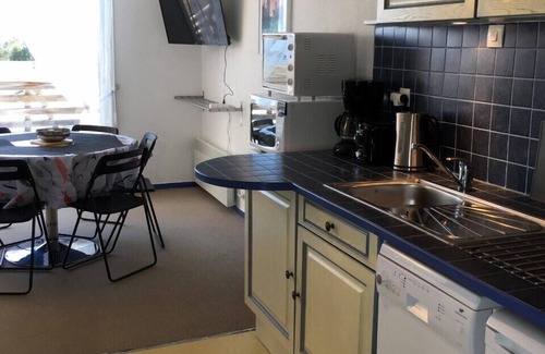 It is made up of an entrance with to its left a bathroom with shower cubicle, a wc, a closed cabin with a double bed for sleeping 2 people with a 85 kg dunlopillo mattress for maximum comfort. To the right, a storage cupboard, a bunk bed for sleeping 2 people and an equipped kitchen (fridge, oven, microwave, coffee maker, toaster, dishwasher, refrigerator). A large living room, with a sitting area with a sofa bed for sleeping 2 people, a large flat screen TV, a dining area with a round table for 6 people, a large storage cupboard and board games for kids.