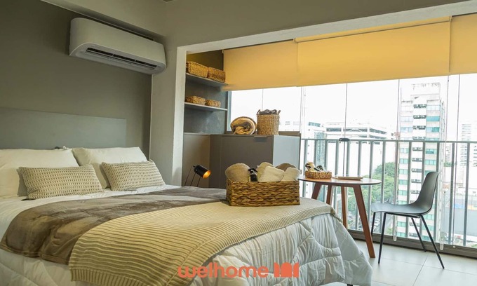 Studio moderno e acolhedor na Vila Mariana, pensado para quem busca conforto com propósito. Ambiente higienizado com produtos especiais e aromatizado com home spray Thesign, feito com elementos naturais brasileiros. Enxoval premium, toque orgânico e detalhes voltados à biofilia criam uma experiência sensorial única no coração da cidade.