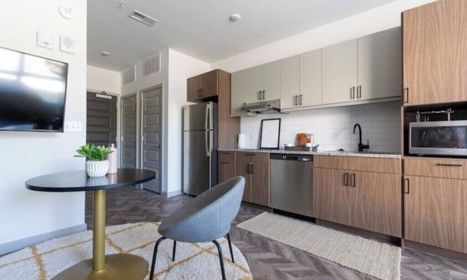 Located within walking distance to the University of Illinois, this apartment hotel offers a fully-equipped kitchen and full washer & dryer within a beautifully designed private hotel room. This is the perfect place for an extended stay. Best place in Urbana!