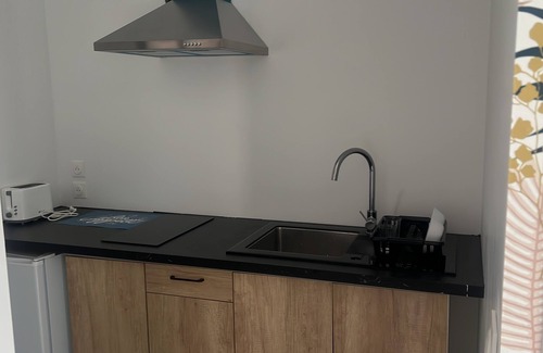 Tout le nécessaire pour cuisiner la plaque chauffante au micro-ondes, la poêle, la cafetière. serviettes et draps fournis