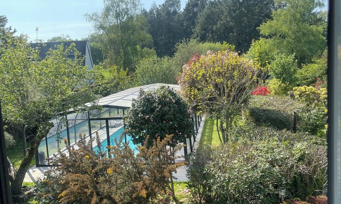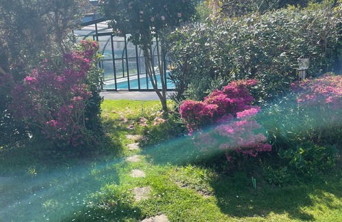 - Cottage with heated swimming pool, Beautiful flowered residence in the countryside near the sea