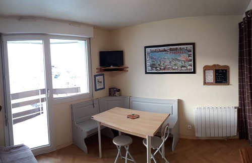 The studio is located in a family Pyrenean ski resort still very wild with its hook pines and its chalet village Studio 4places with balcony on the 3rd floor with lift of the Résidence Plein Soleil facing the slopes.