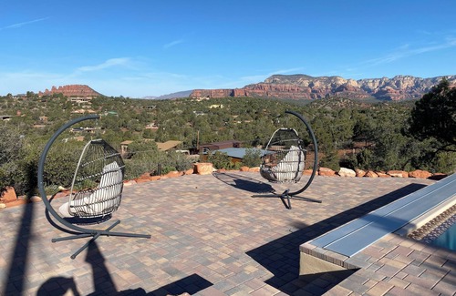 Easy access to some of the best trails and restaurants in Sedona!! This secluded hilltop estate is ideal for getting away from it all and relax. Dark skies offer great star gazing. Unblocked panoramic vista toward Boynton Canyon and Thunder Mountain. Have a BBQ on the huge Greek Tavern like courtyard or relax on the pool patio and watch sunset.